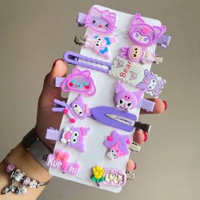 ست گیره مو دخترانه بنفش دلربا Delroba طرح کرومی کد BZM69 بسته 14 عد