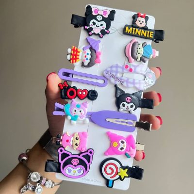ست گیره مو دخترانه بنفش دلربا Delroba طرح کرومی کد BZM69 بسته 14 عد