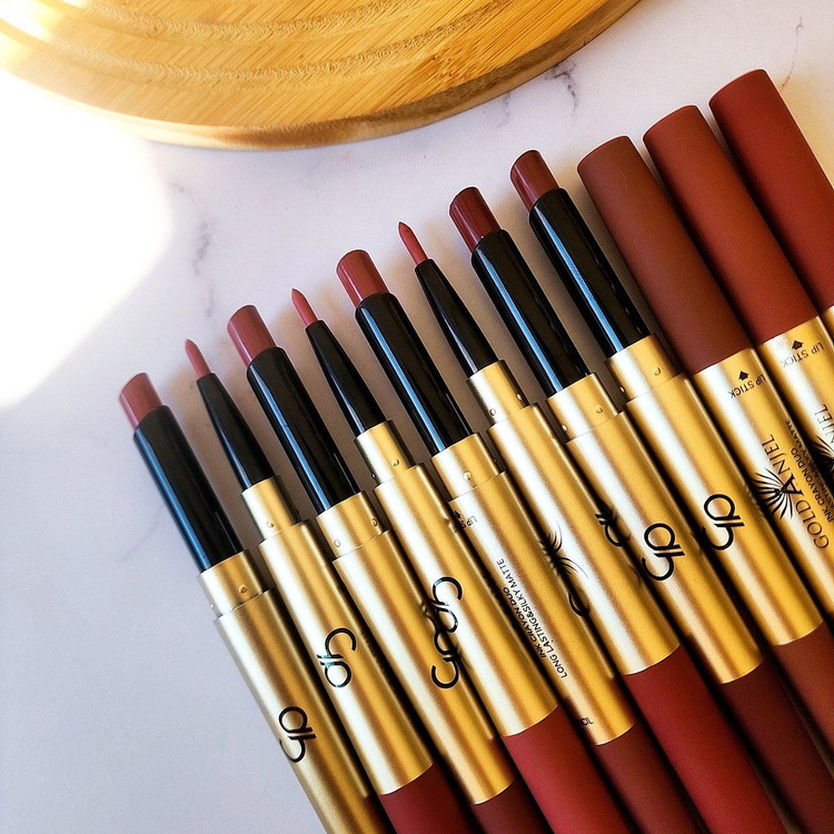 6-رژلب دوطرفه گلدآنجل رنگبندی هاشم توی عکس هست و درقسمت توضیحات میتونید بنویسید که کدوم رنگ براتون ارسال بشه