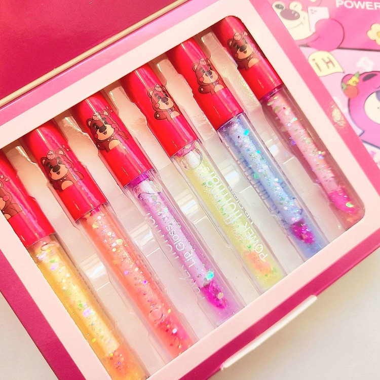 7-لیپ گلاس شاین حرارتی خرسی که روی لب یه حالت صورتی شاین داره باشاین های ریزوطبیعی