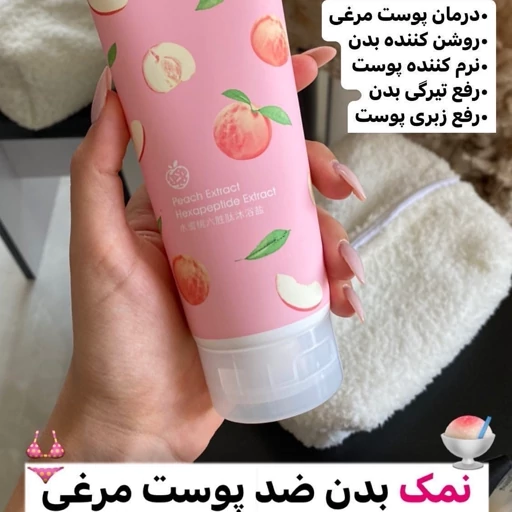 3-نمک و اسکراب بدن هلو برای ازبین رفتن پوست مرغی وتیرگی
