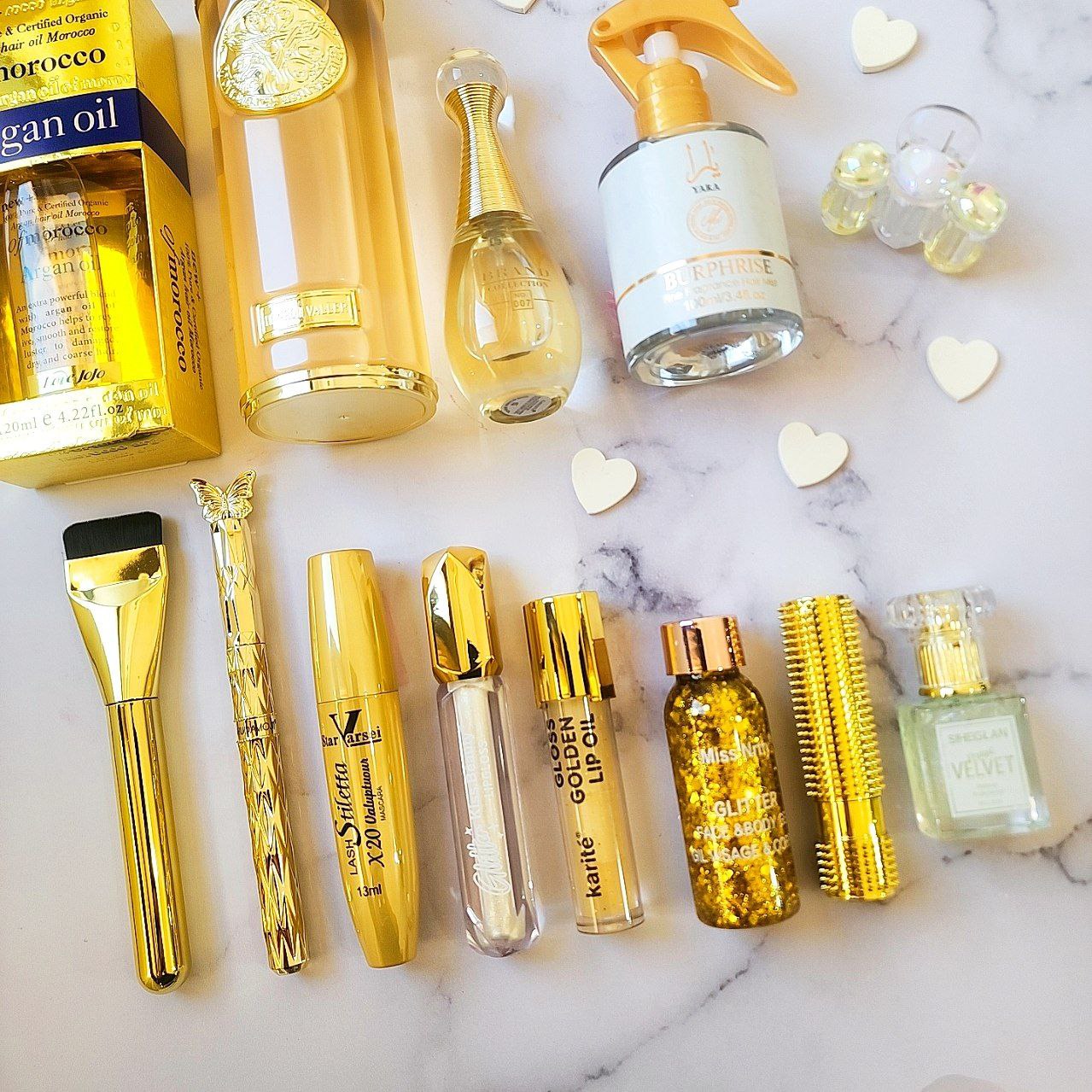 پک لوازم آرایشی کامل عروس طلایی ( باکس لوازم آرایشی / هدیه ولنتاین )