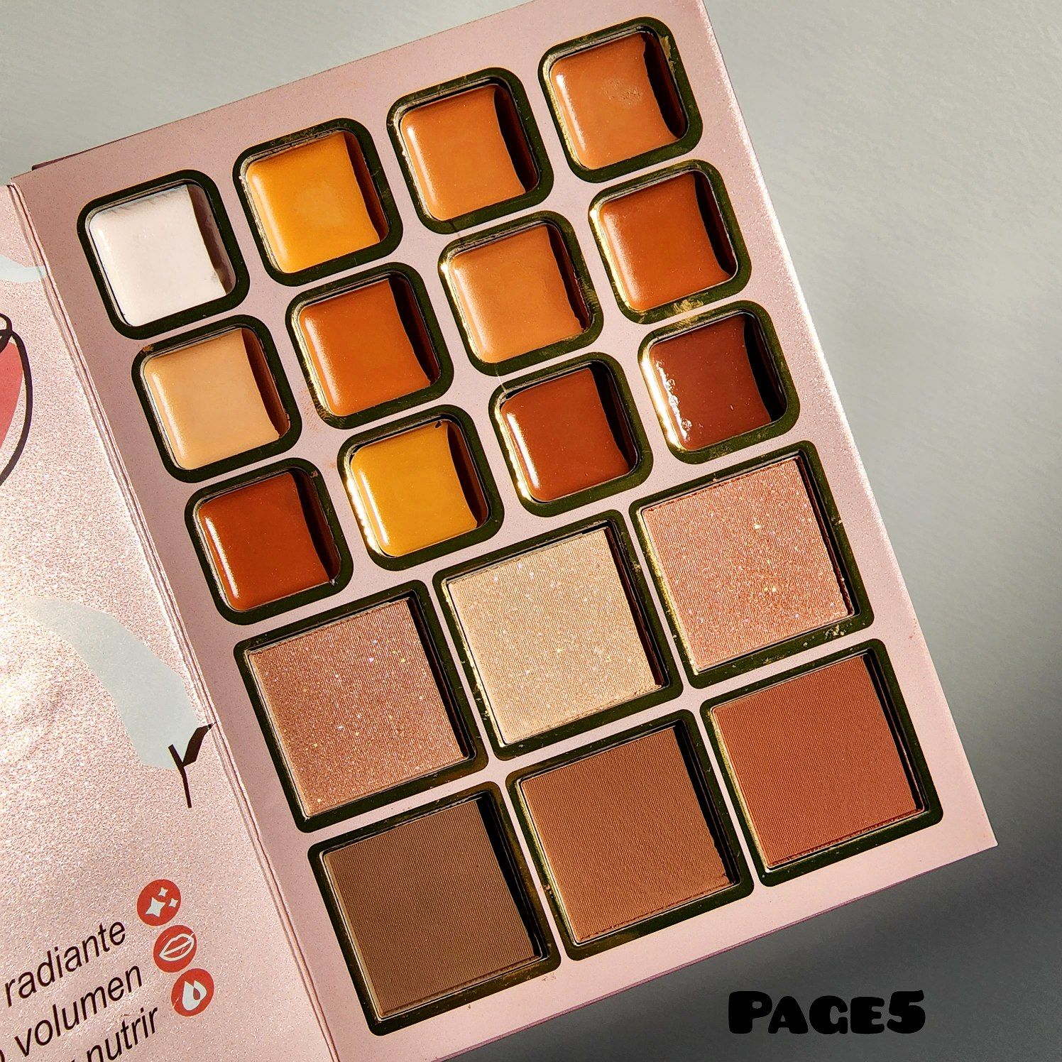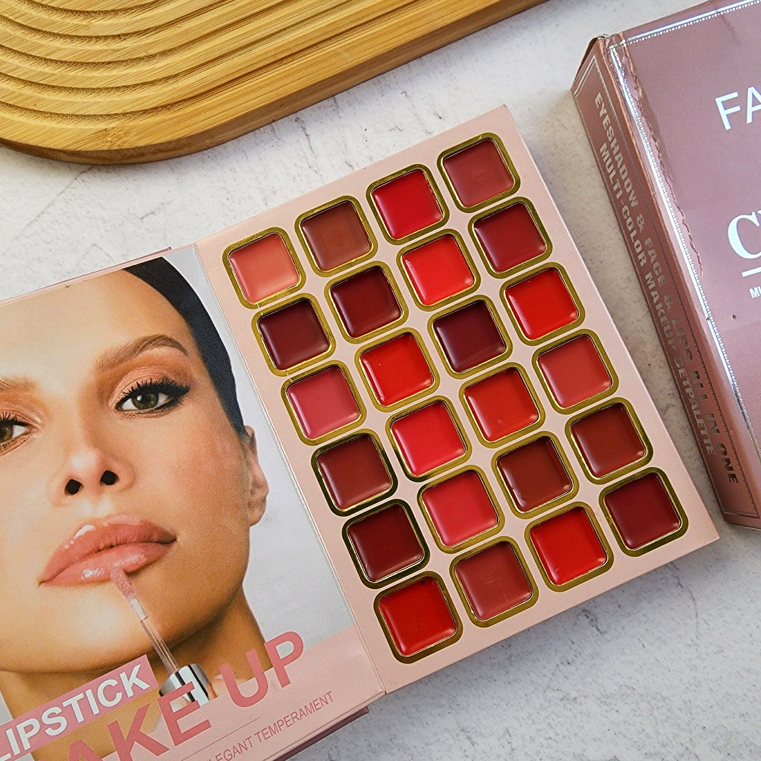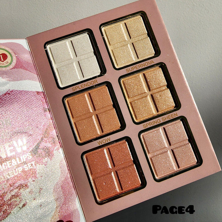 و دارای ۷۸ رنگ سایه مات ومخملی و شاین و رژگونه و هایلایتر و کانتور و رژ