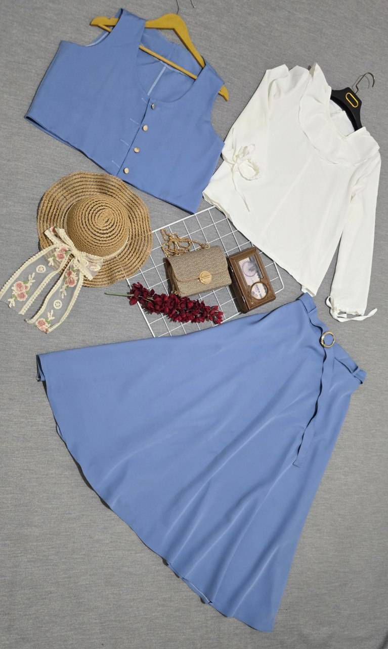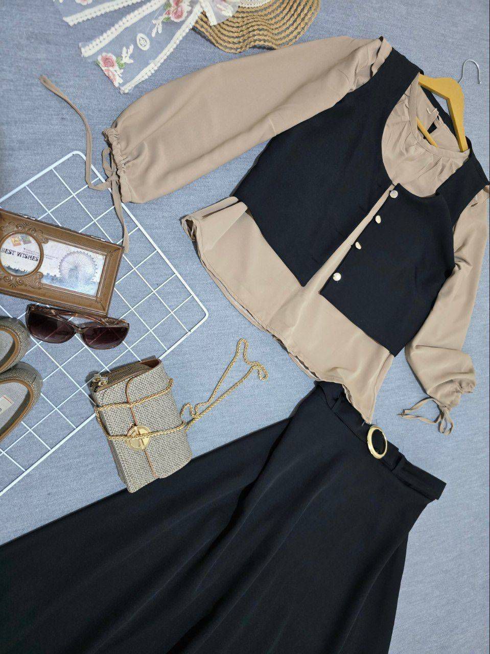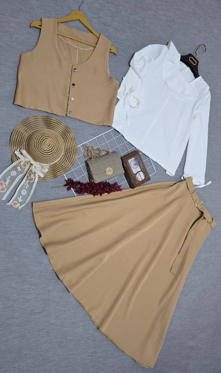 ست سه تیکه آرینا جنس شومیز الیزه جلیقه و دامن مازراتی